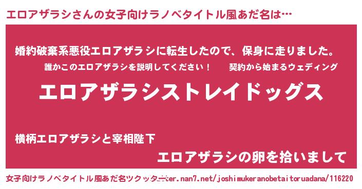 | 男性向けラノベタイトル風あだ名 | 『Re:エロアザラシから始める異世界生活』 |