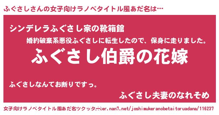 | 男性向けラノベタイトル風あだ名 | 『やはりふぐさしの青春ラブコメはまちがっている 』 |