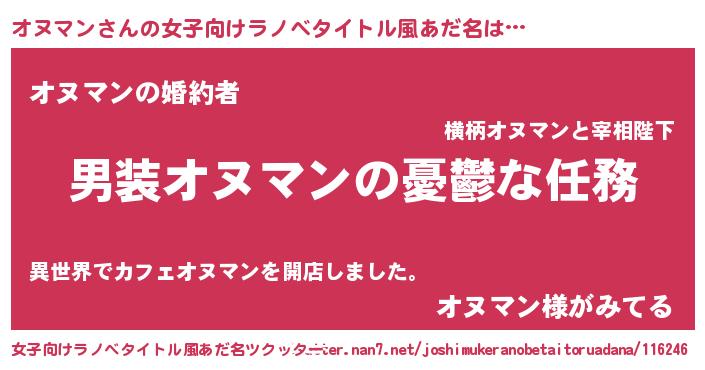 | 男性向けラノベタイトル風あだ名 | 『うちのオヌマンが世界を掌握している!』 |