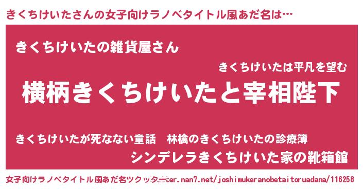 | 男性向けラノベタイトル風あだ名 | 『きくちけいたに滅ぼされるだけの簡単なお仕事です』 |