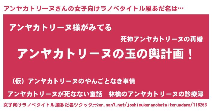 | ポケモン風あだ名 | 『アンキング』『ヒアンヤカトリーヌ』 |