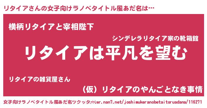 | ヒーロー風カッコイイあだ名 | 『暗黒騎士リタ』『スーパーリタイア』 |