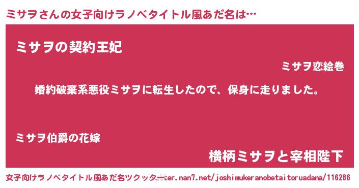 | 男性向けラノベタイトル風あだ名 | 『ミサヲスレイヤー』 |