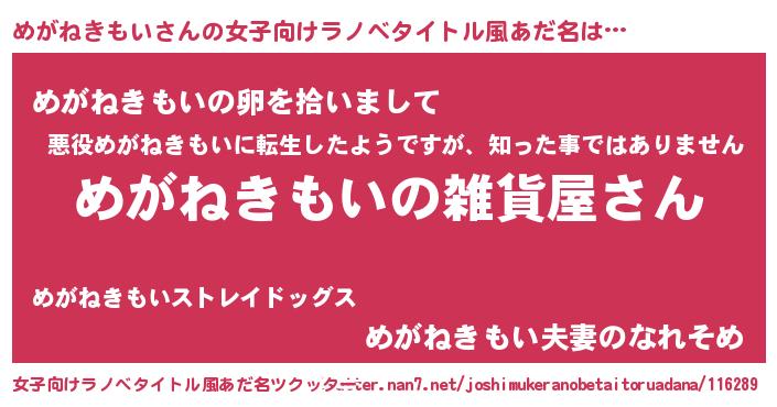 | 男性向けラノベタイトル風あだ名 | 『やはりめがねきもいの青春ラブコメはまちがっている 』 |