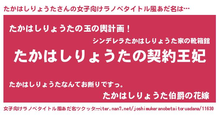 | 男性向けラノベタイトル風あだ名 | 『たかはしりょうたという概念が存在しない退屈な世界 』 |