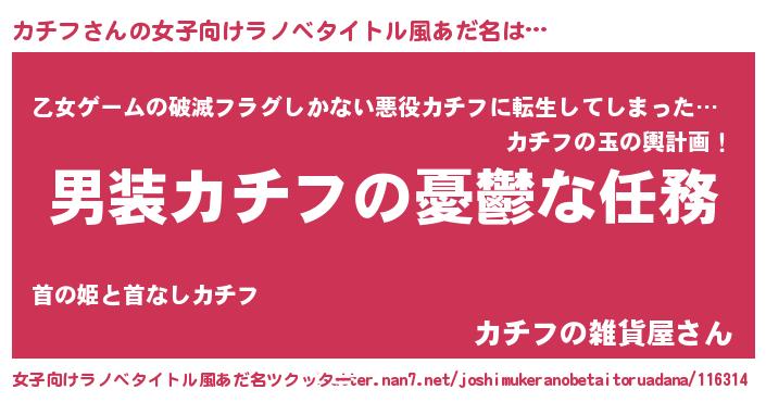 | 男性向けラノベタイトル風あだ名 | 『冴えないカチフの育てかた』 |