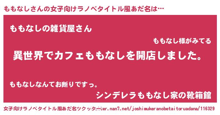 | 男性向けラノベタイトル風あだ名 | 『誰もが恐れるあのももなしが、ぼくの専属メイドになるようです。』 |
