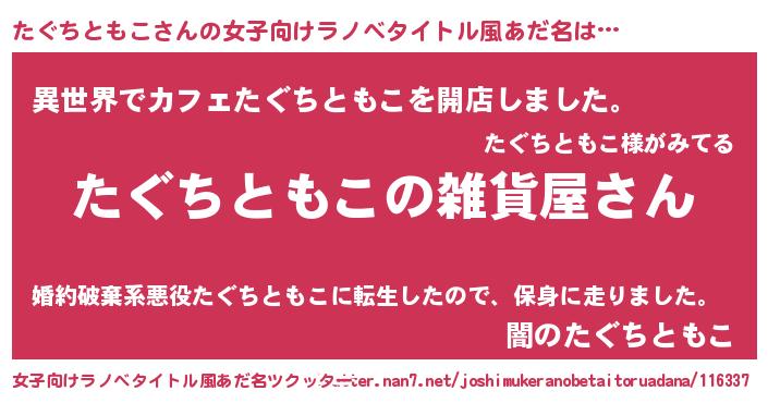 | 男性向けラノベタイトル風あだ名 | 『やはりたぐちともこの青春ラブコメはまちがっている 』 |