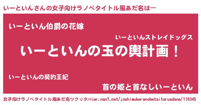 | 男性向けラノベタイトル風あだ名 | 『転生したらいーといんだった件』 |
