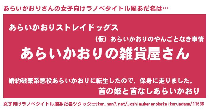 | 男性向けラノベタイトル風あだ名 | 『やはりあらいかおりの青春ラブコメはまちがっている 』 |