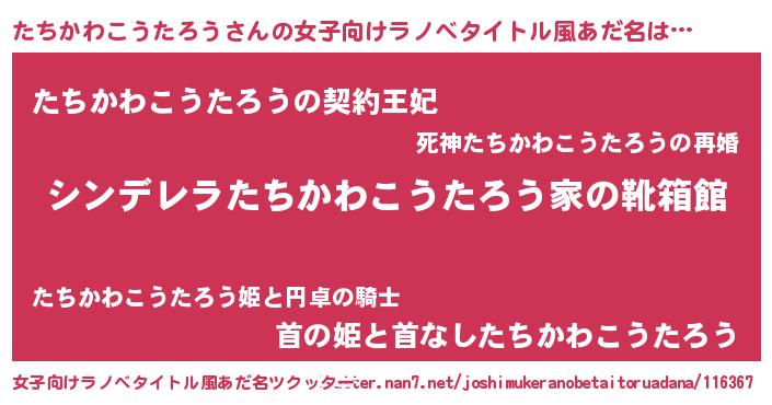 | 男性向けラノベタイトル風あだ名 | 『緋弾のタチカワコウタロウ』 |