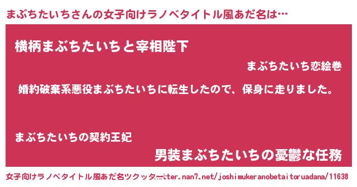 | 男性向けラノベタイトル風あだ名 | 『マブチタイチスレイヤー』 |