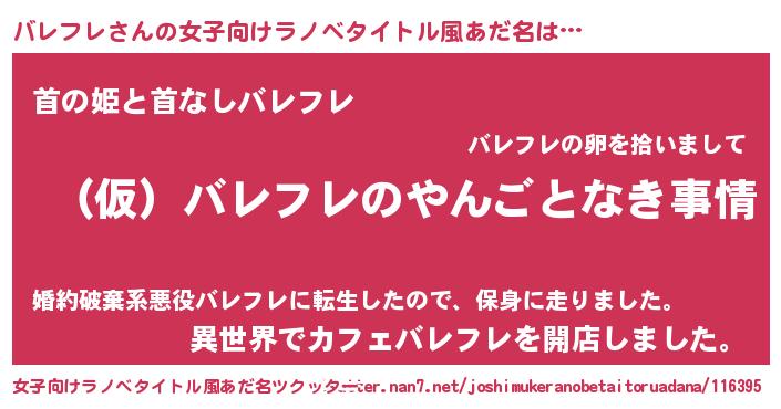 | 男性向けラノベタイトル風あだ名 | 『バレフレの憂鬱』『バレフレスレイヤー』 |