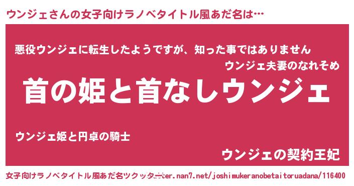 | 意味不明あだ名 | 『住所不定無職ウンジェ(50歳)』 |