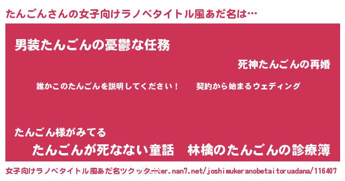 | 男性向けラノベタイトル風あだ名 | 『タンゴンアートオンライン』 |