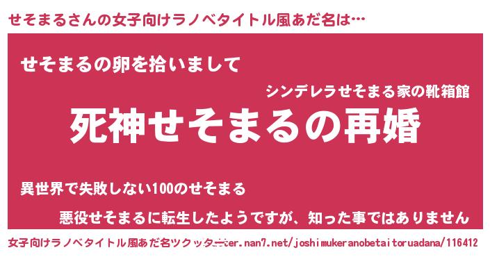 | 男性向けラノベタイトル風あだ名 | 『ノーゲーム・ノーセソマル』 |