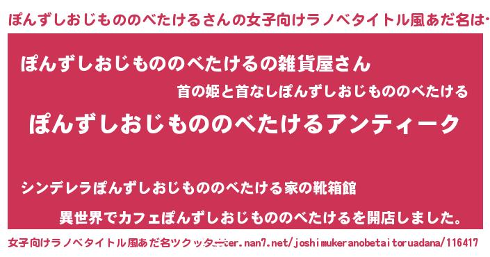 | 意味不明あだ名 | 『自称ぽんずしおじもののべたける』 |