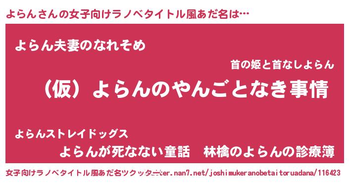 | 男性向けラノベタイトル風あだ名 | 『よらんの憂鬱』『魔弾の王とよらん』 |
