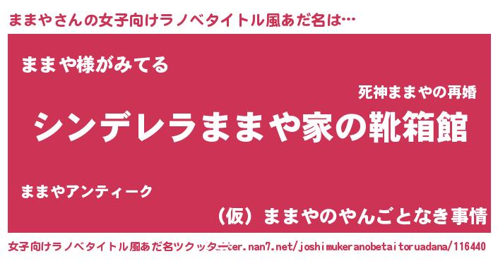 | 男性向けラノベタイトル風あだ名 | 『緋弾のママヤ』『ままやの憂鬱』 |