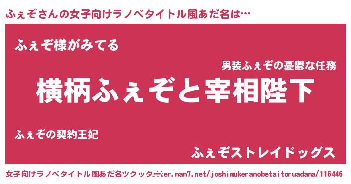 | 男性向けラノベタイトル風あだ名 | 『ふぇぞに滅ぼされるだけの簡単なお仕事です』 |