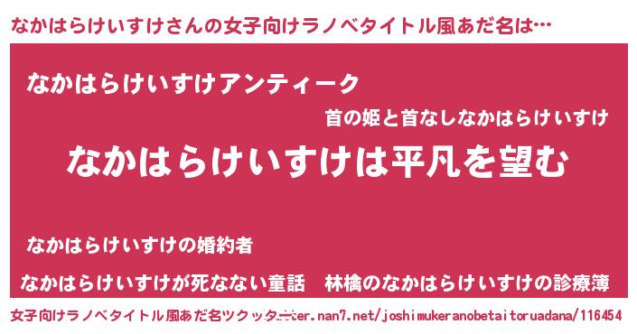 | 胡散臭い通販商品みたいなあだ名 | 『信頼と実績のサプリメント…その名も「なかはらけいすけ」』 |