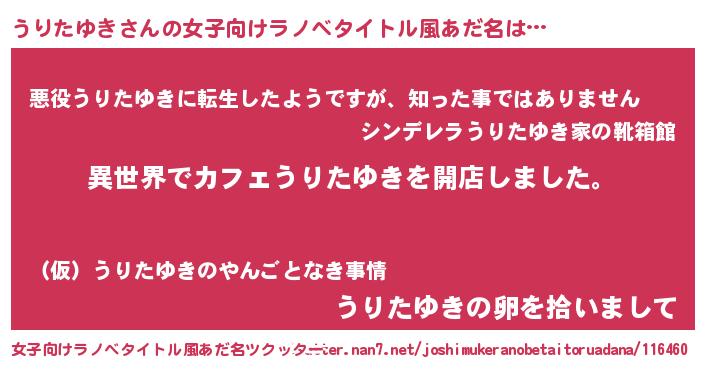 | 男性向けラノベタイトル風あだ名 | 『誰もが恐れるあのうりたゆきが、ぼくの専属メイドになるようです。』 |