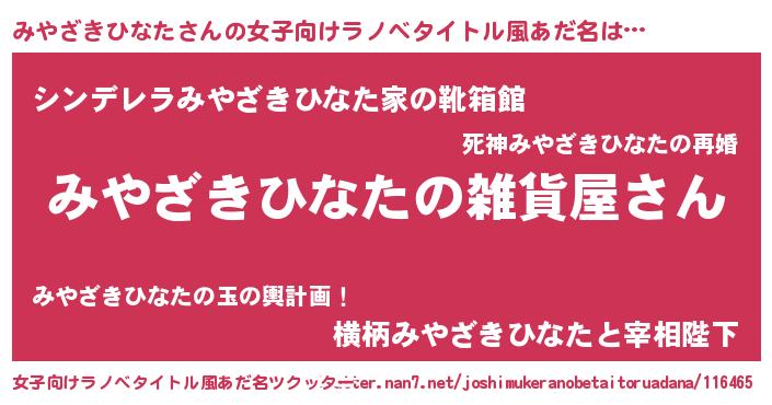 | 男性向けラノベタイトル風あだ名 | 『やはりみやざきひなたの青春ラブコメはまちがっている 』 |