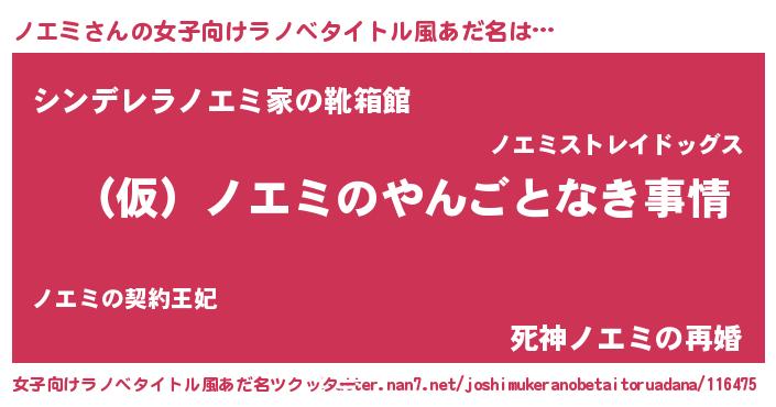 | ヘコむあだ名 | 『ノエにゅー』『ノエミ(笑)』 |