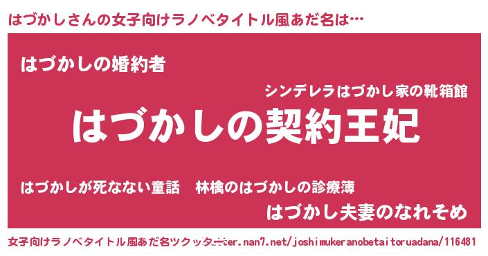 | 男性向けラノベタイトル風あだ名 | 『はづかしという概念が存在しない退屈な世界 』 |