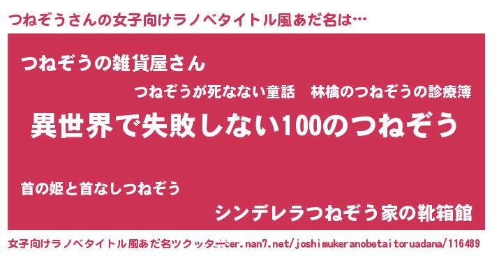 | 男性向けラノベタイトル風あだ名 | 『つねぞうという概念が存在しない退屈な世界 』 |