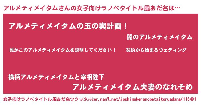 | 男性向けラノベタイトル風あだ名 | 『アルメティメイタムアートオンライン』 |
