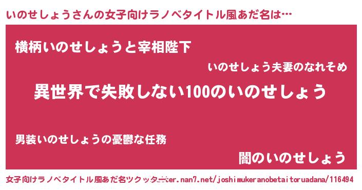 | 男性向けラノベタイトル風あだ名 | 『いのせしょうという概念が存在しない退屈な世界 』 |