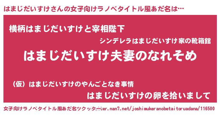 | 男性向けラノベタイトル風あだ名 | 『おまえをオタクにしてやるから、俺をはまじだいすけにしてくれ! 』 |