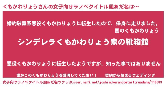 | 男性向けラノベタイトル風あだ名 | 『緋弾のクモカワリョウ』 |