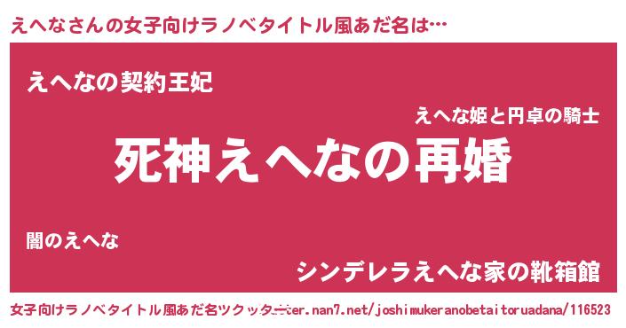 | 男性向けラノベタイトル風あだ名 | 『ノーゲーム・ノーエヘナ』 |