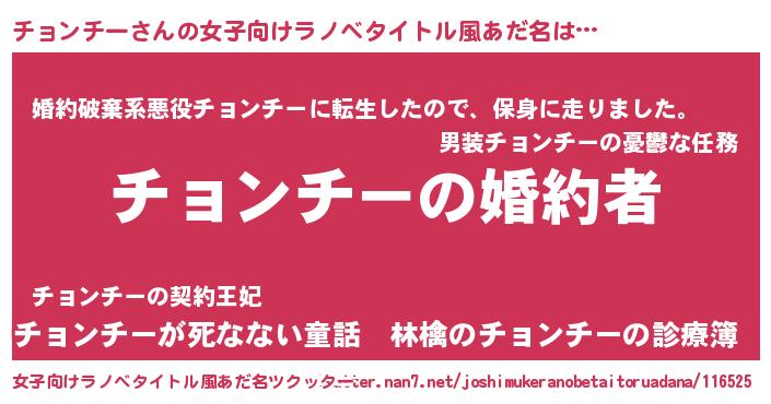 | ファンタジー風あだ名 | 『エターナルチョンチーー』 |