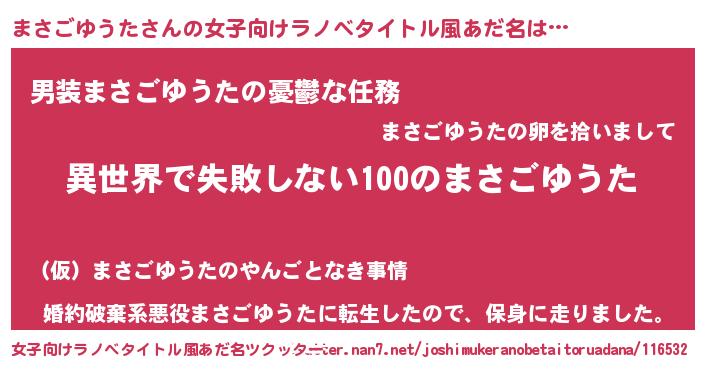 | 男性向けラノベタイトル風あだ名 | 『まさごゆうたという概念が存在しない退屈な世界 』 |