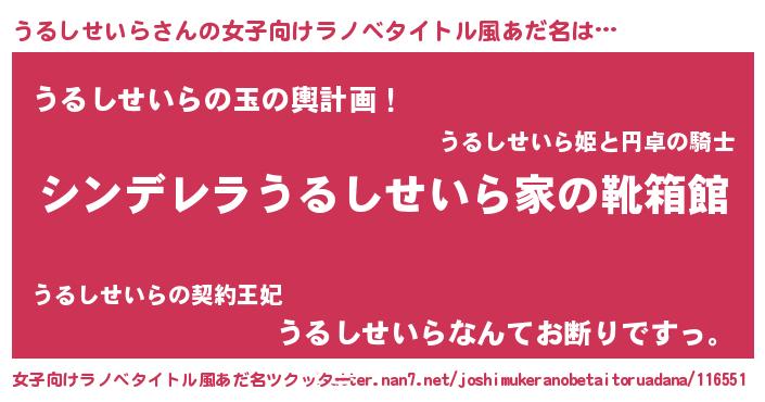 | 男性向けラノベタイトル風あだ名 | 『冴えないうるしせいらの育てかた』 |