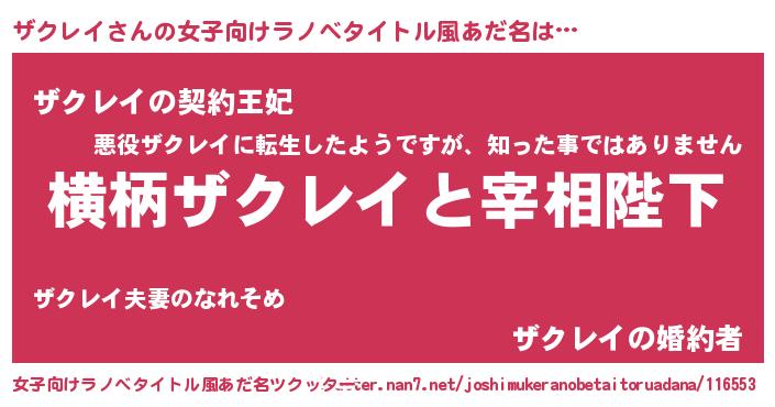 | 男性向けラノベタイトル風あだ名 | 『ザクレイに滅ぼされるだけの簡単なお仕事です』 |