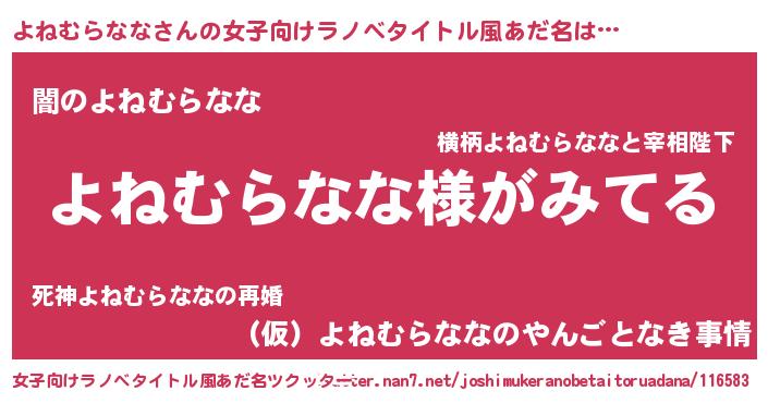 | 肩書あだ名 | 『よねむらなな塾長』『よねむらなな総統』 |
