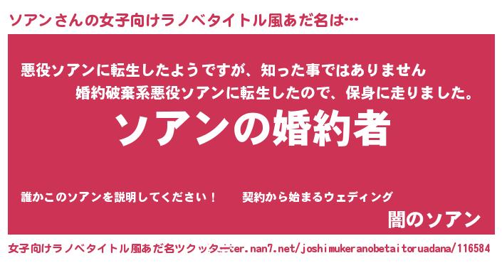 | 胡散臭い通販商品みたいなあだ名 | 『運命の人と巡り会える高級そうな絵画…その名も「ソアン」』 |