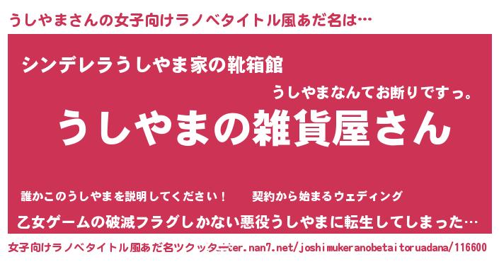 | 男性向けラノベタイトル風あだ名 | 『やはりうしやまの青春ラブコメはまちがっている 』 |