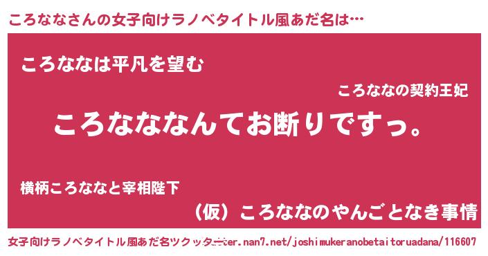 | 意味不明あだ名 | 『自称ころなな』『ペロリンころなな』 |