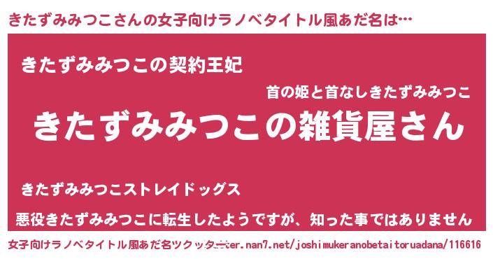 | 男性向けラノベタイトル風あだ名 | 『やはりきたずみみつこの青春ラブコメはまちがっている 』 |