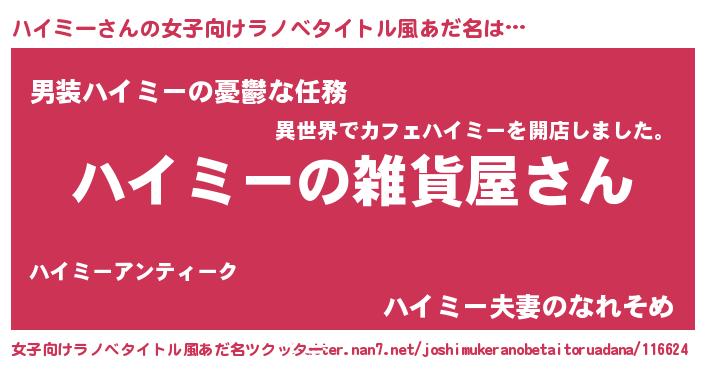 | ファンタジー風あだ名 | 『エターナルハイミーー』『クインハット』 |