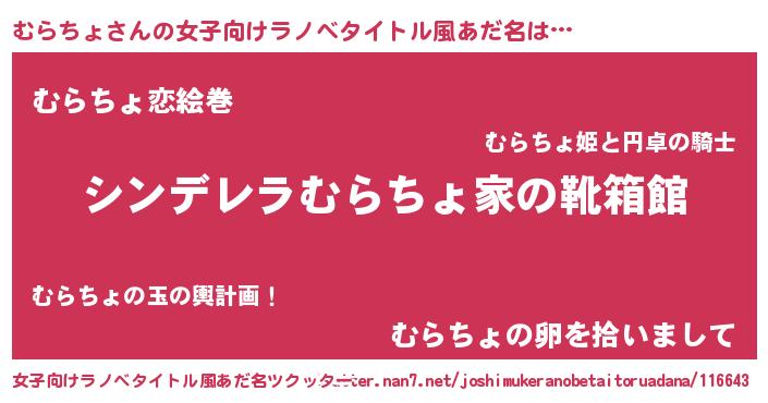 | 男性向けラノベタイトル風あだ名 | 『冴えないむらちょの育てかた』 |