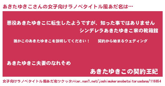 | 男性向けラノベタイトル風あだ名 | 『アキタユキコアートオンライン』 |
