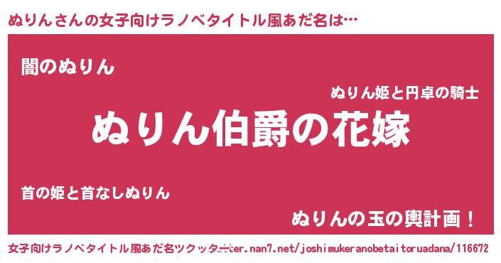 | ファンタジー風あだ名 | 『エターナルヌリンー』『ゼヌリトゥ』 |
