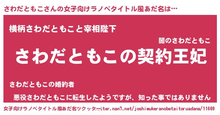| 男性向けラノベタイトル風あだ名 | 『さわだともこという概念が存在しない退屈な世界 』 |