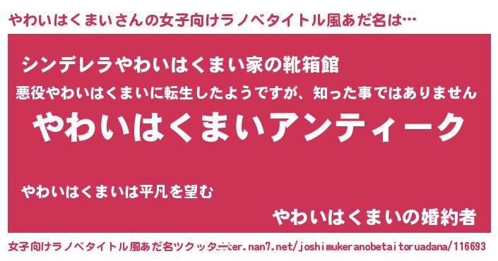 | 意味不明あだ名 | 『自称やわいはくまい』 |